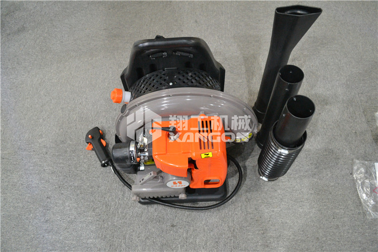 背負式馬路吹風機以小型風冷二沖程汽油機為動力,帶動風葉高速旋轉,在導風罩殼引導下形成強力風束,通過加長風管和風嘴輸出。