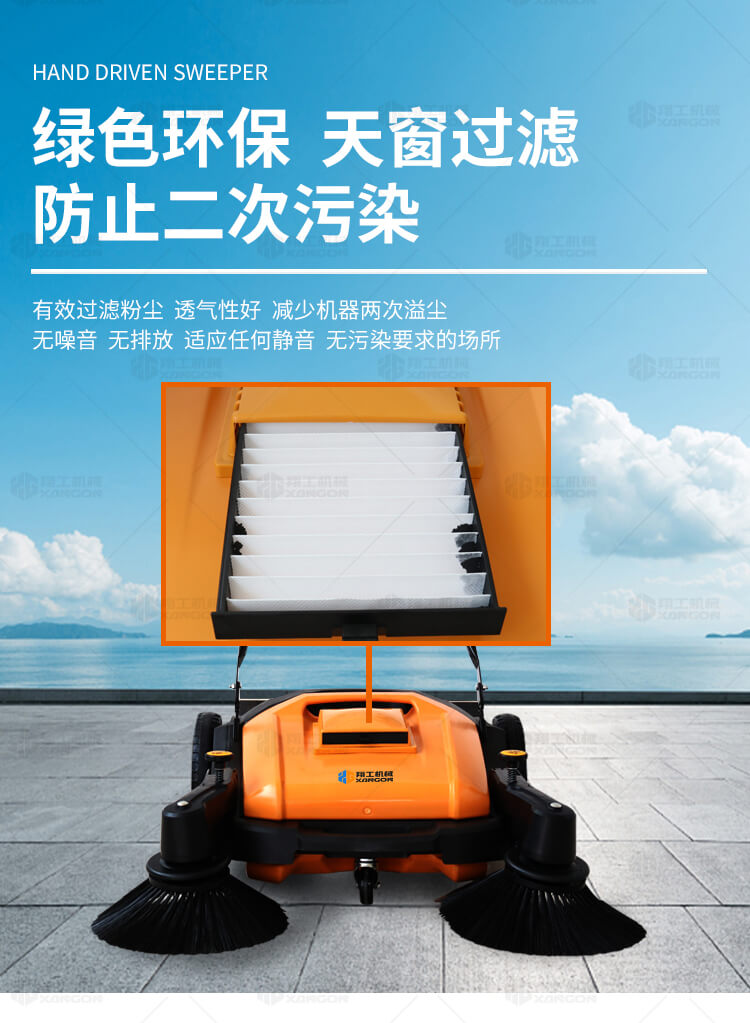 手推式掃地機(jī)能清潔房屋周邊范圍:包括小路,公路,車道和院子,能比用普通的掃把和簸箕節(jié)省5倍的時(shí)間,清掃時(shí)垃圾被迅速的收集到塵箱,簡單、快速、干凈。