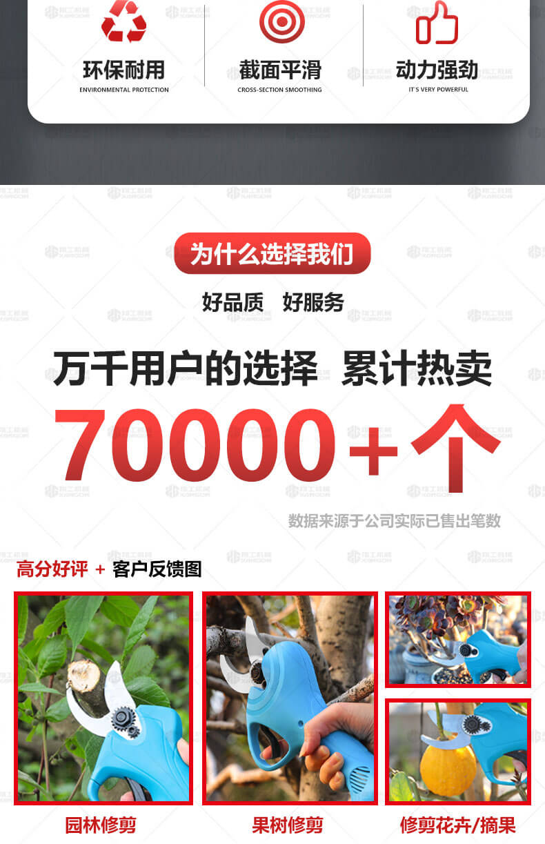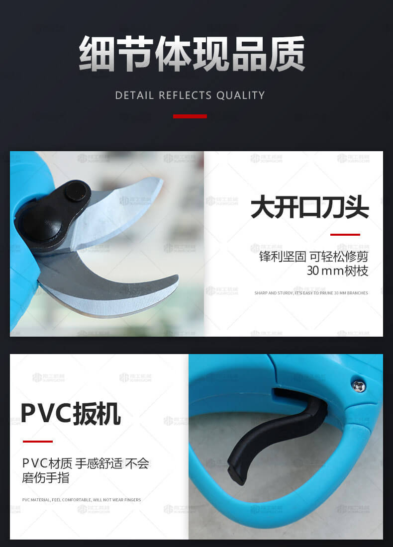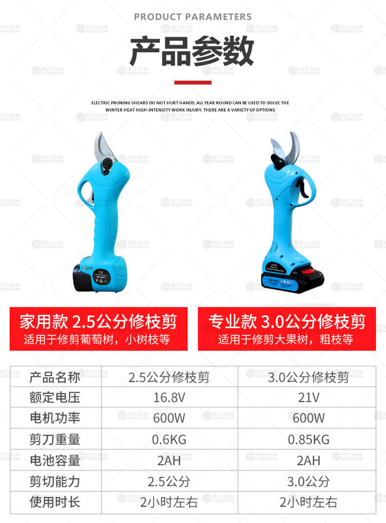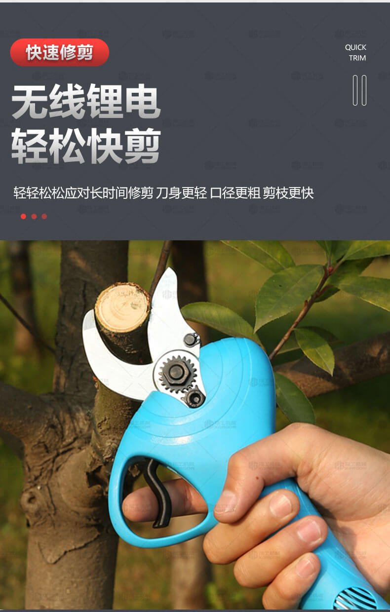 電動修枝剪的使用大大提高了植物的修剪效率,降低了修剪工的工作強(qiáng)度,大受人們的喜愛。滿足了當(dāng)今社會簡單輕巧的工作方式,一把小小的電動修枝剪不傷手,一年四季均可以使用,解決寒冬酷暑高強(qiáng)度工作的傷害,電動修枝剪有多種選擇,這是一款無線的電動修枝剪,使用更加方便。