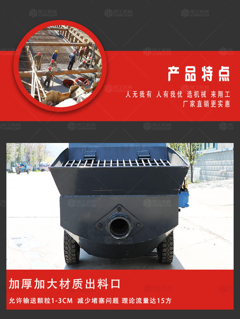這款30KW澆筑泵優(yōu)勢多多,性能可靠,設(shè)備各個結(jié)構(gòu)制造科學(xué),電機(jī)功率大、性能穩(wěn)定、施工效率高等優(yōu)勢,使用電動澆筑泵大大提高了施工效率,降低勞動強(qiáng)度,節(jié)約人工,被廣泛應(yīng)用。是工程施工的好幫手。