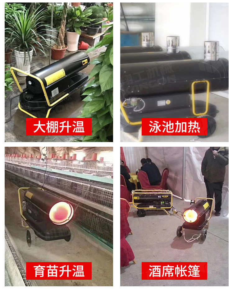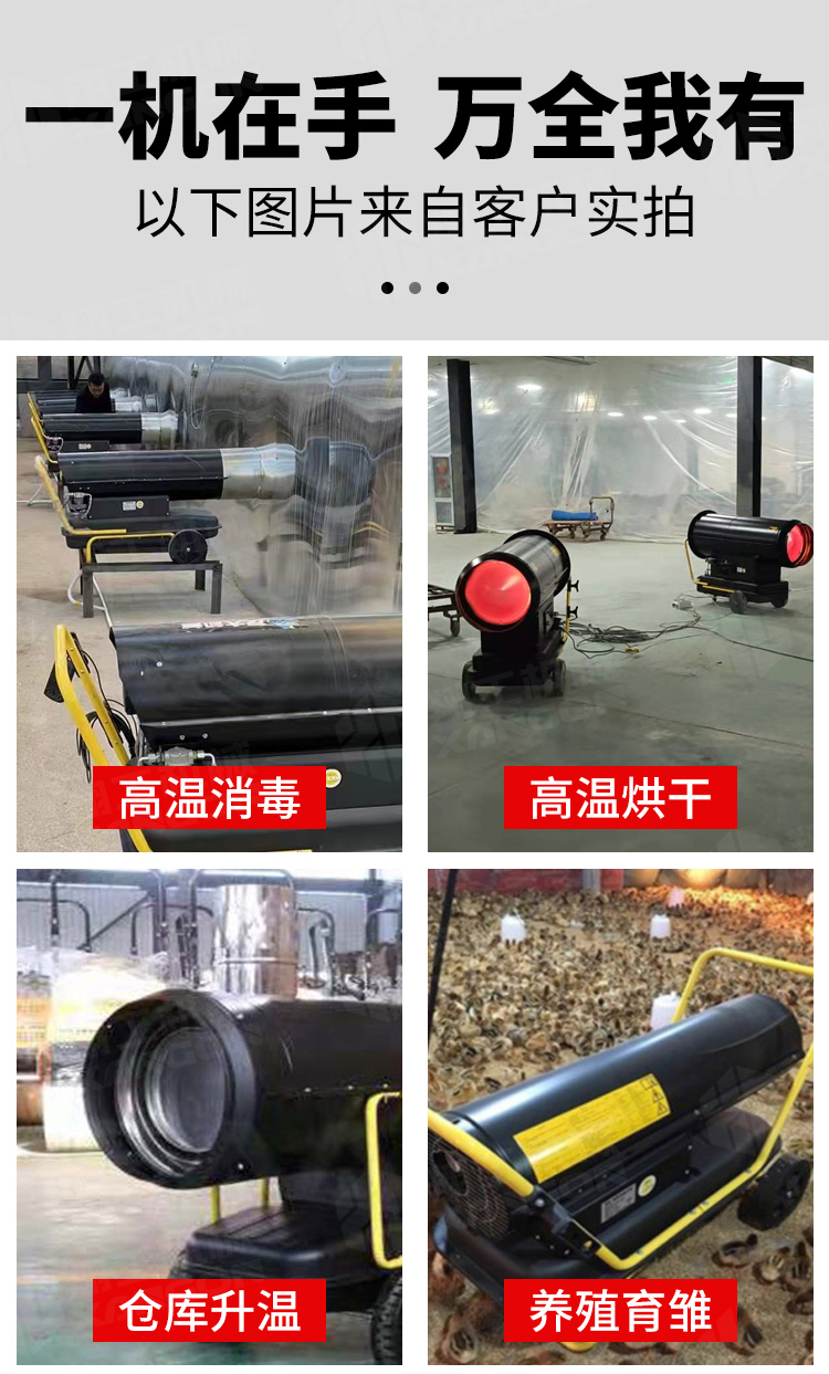 用于大場景消毒房高溫殺菌,畜牧養(yǎng)殖業(yè)取暖,蔬果大棚取暖,建筑烘干取暖,木材烘干等;
