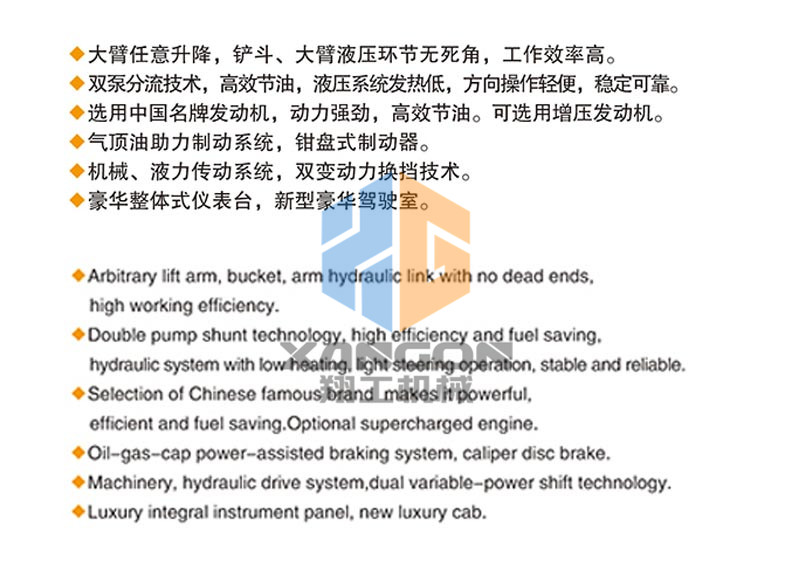 主要用于鏟裝土壤、砂石、石灰、煤炭等散狀物料,也可對礦石、硬土等作輕度鏟挖作業(yè)。換裝不同的輔助工作裝置還可進(jìn)行推土、起重和其他物料如木材的裝卸作業(yè)。在道路、特別是在高等級公路施工中,裝載機(jī)用于路基工程的填挖、瀝青混合料和水泥混凝土料場的集料與裝料等作業(yè)。