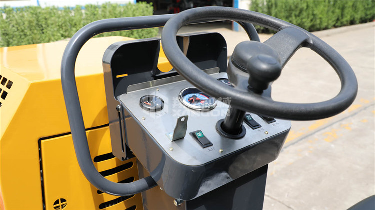 此款壓路機(jī)自重1050kg,振動力可達(dá)3噸,液壓轉(zhuǎn)向。
