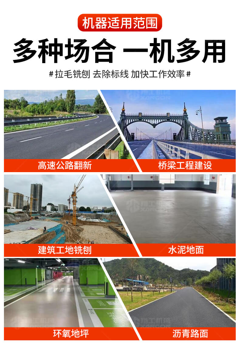 鑿毛銑刨機(jī)多種場(chǎng)合一機(jī)多用,拉毛銑刨去除標(biāo)線加快工作效率.