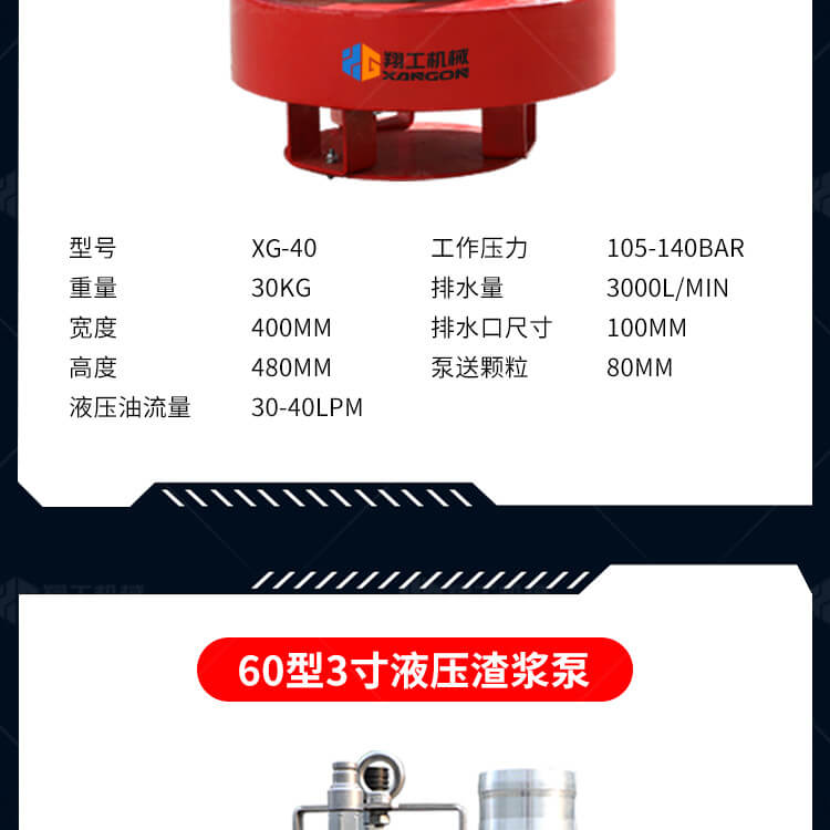 液壓渣漿泵大口徑排水可泵送1叿M大顆粒,鋁合金泵體鑄鉄葉輪,耐磨耐腐鉵