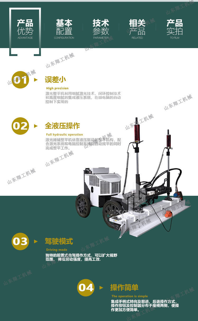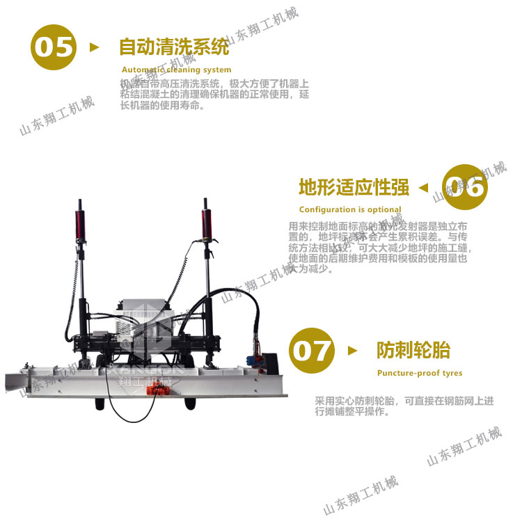 翔工機(jī)械精心研制開(kāi)發(fā)的激光混凝土整平機(jī)利用先進(jìn)的激光發(fā)射接收系統(tǒng)形成的閉環(huán)回路控制整平板尺的工作,精度高,廣泛用于現(xiàn)代工業(yè)廠房、大型購(gòu)物場(chǎng)所、貨倉(cāng)及其它大面積混凝土地面施工。