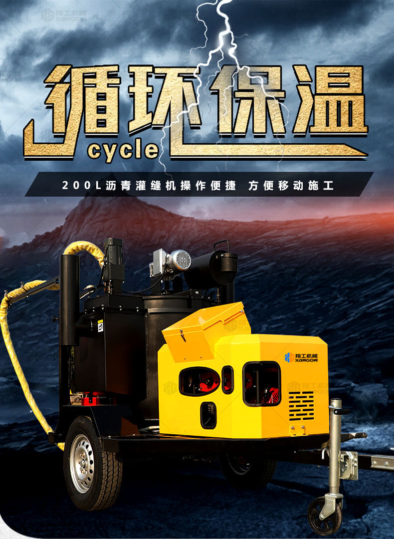 XGF-200瀝青灌縫機(jī)使用原料為瀝青灌縫膠,主要用于瀝青路面不規(guī)則裂縫、混凝土路面、橋梁伸縮縫、上下水道、煤氣管埋設(shè)機(jī)鋪裝路面的連結(jié)處防水處理,是翔工機(jī)械專門設(shè)計(jì)、生產(chǎn)的瀝青補(bǔ)灌縫機(jī)械。