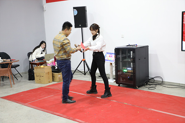 現(xiàn)在揭曉餃子中的驚喜是什么?餃子中包有糖,吃出有糖餃子的幸運(yùn)伙伴上臺(tái)砸金蛋拿大獎(jiǎng),當(dāng)然不小心也會(huì)砸出了懲罰呦!