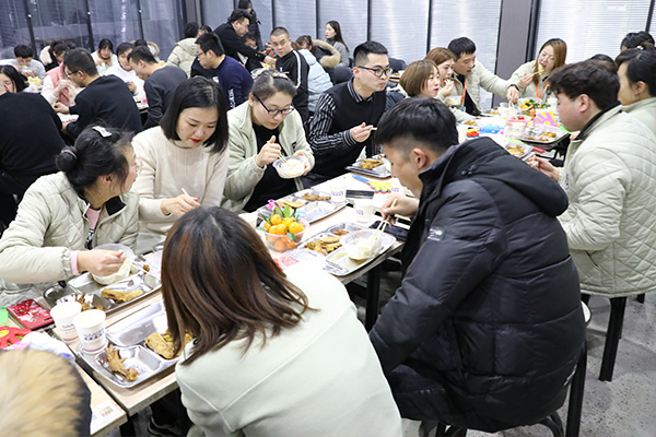 一頓操作之后已經(jīng)香氣撲鼻,我們的包餃子大隊(duì)開始行動(dòng)了!大家熱情高漲,踴躍參與,整個(gè)包餃子過程,歡聲笑語不斷,大家齊心協(xié)力、精誠合作,一排排各具個(gè)性的餃子很快就擺滿了盤子(這些各具個(gè)性的餃子中有驚喜等著大家呦,詳情活動(dòng)揭曉)。接下來餃子下鍋,靜等冬至宴會(huì)開始!