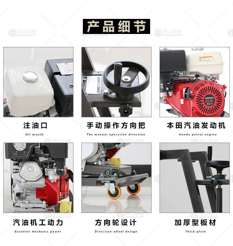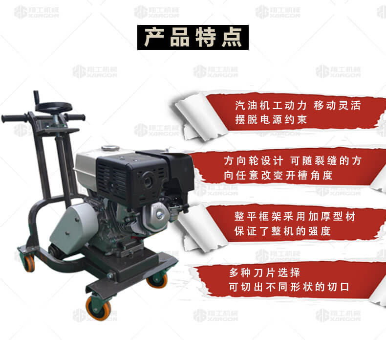 產(chǎn)品簡介: 適用于瀝青路面灌縫修補(bǔ)的裂縫打?qū)?。 產(chǎn)品特點(diǎn): 汽油機(jī)工動力,移動靈活,擺脫電源約束;方向輪設(shè)計(jì),可隨裂縫的方向任意改變開槽角度;整平框架采用加厚型材,保證了整機(jī)的強(qiáng)度;多種刀片選擇,可切出不同形狀的切口。