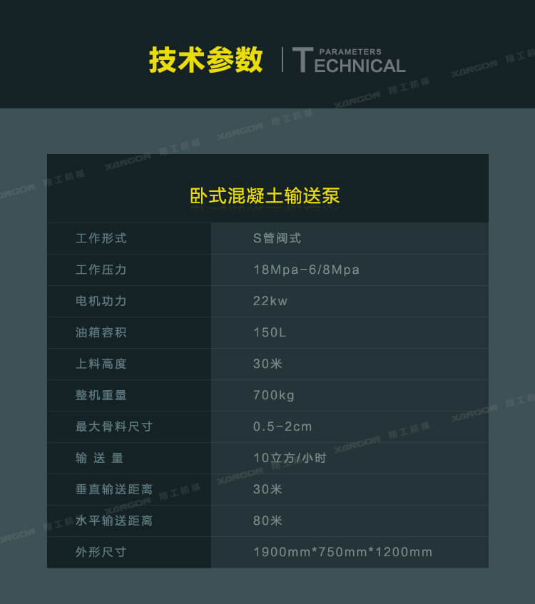 5.此泵機(jī)使用功率非常低只需22KW,考慮到了施工地用電的方便問題。