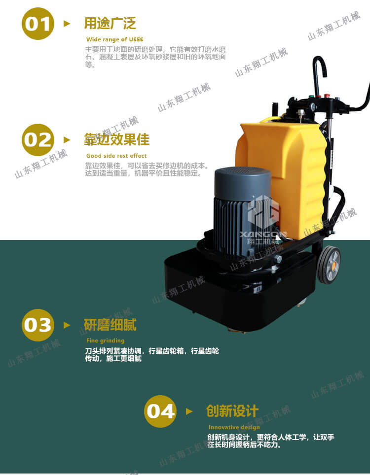 地坪研磨機主要用于地面的研磨處理,它能很好的打磨水磨石、混凝土表層及環(huán)氧砂漿層和舊的環(huán)氧地面等。具有輕便、靈活,工作效率高等特點。是做地坪工程處理的理想設(shè)備。