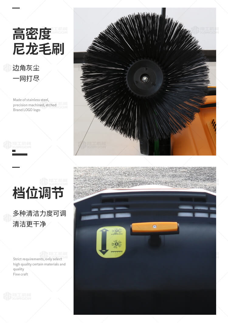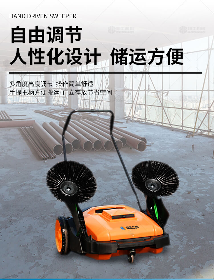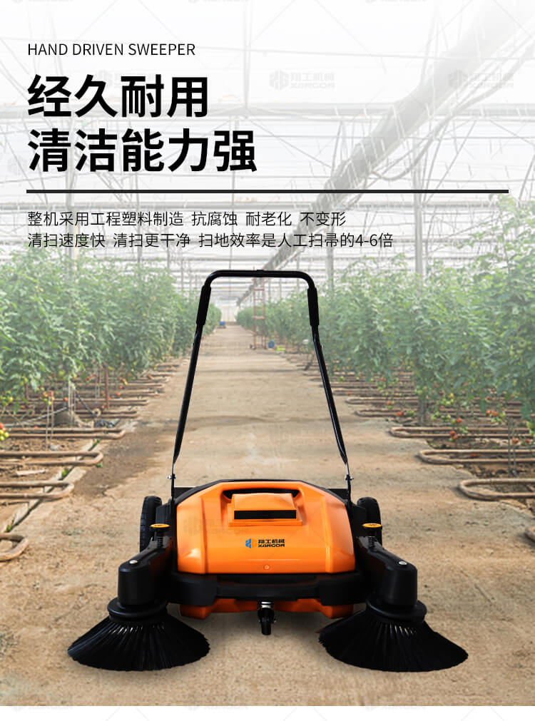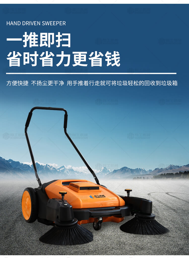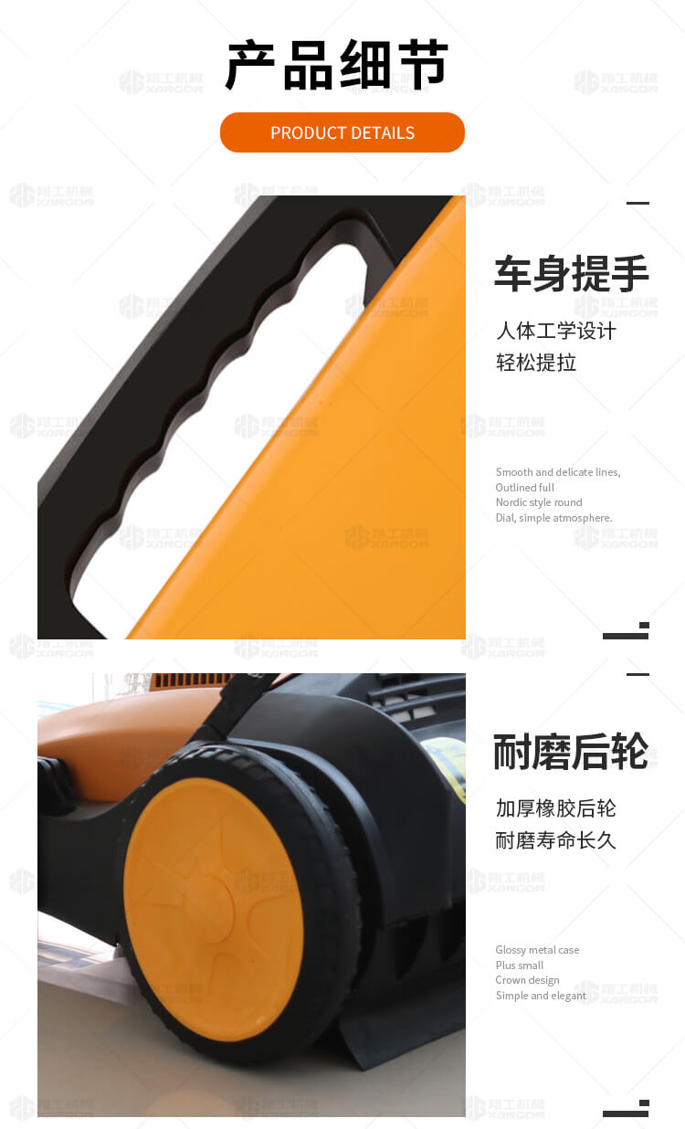 手推式掃地機(jī)能清潔房屋周邊范圍:包括小路,公路,車道和院子,能比用普通的掃把和簸箕節(jié)省5倍的時(shí)間,清掃時(shí)垃圾被迅速的收集到塵箱,簡單、快速、干凈。