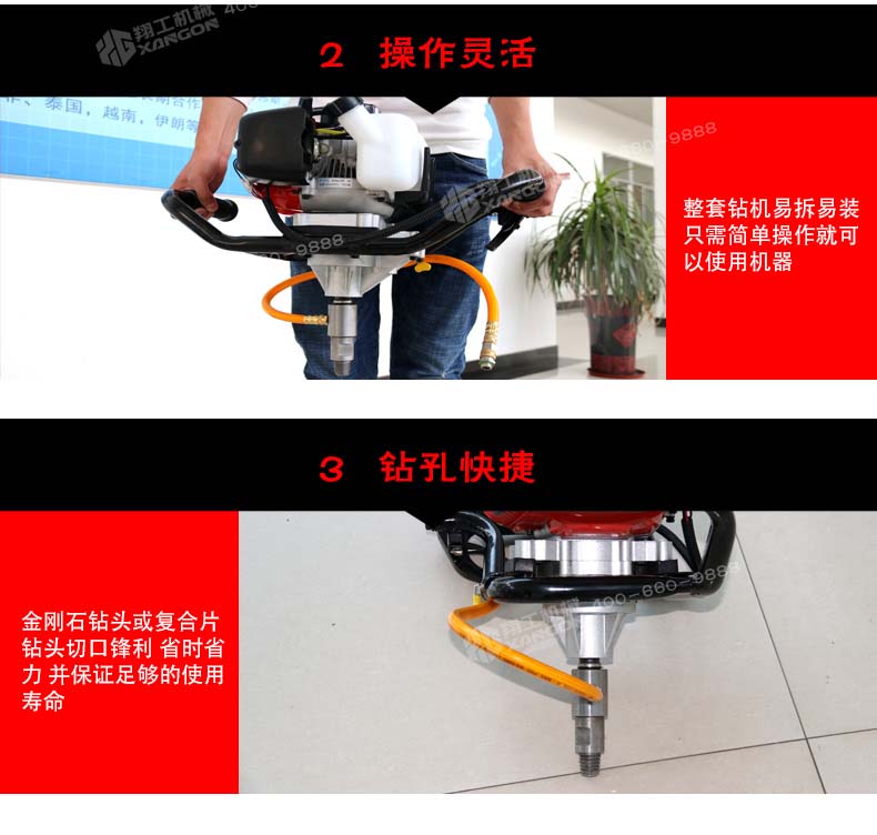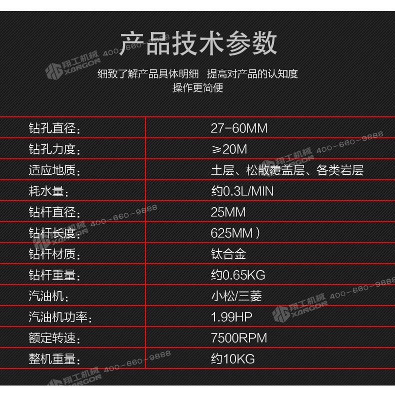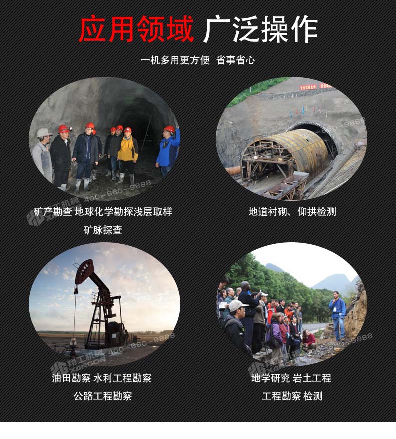 XGZ-1型背包式鉆機(jī)具有鉆進(jìn)快、取樣深、操作簡單、攜帶輕便等特點(diǎn),可以應(yīng)對各種復(fù)雜地質(zhì)、增加鉆進(jìn)效率、降低勞動強(qiáng)度,適用于高山、野外等交通不便的地形、勘探、石油勘測、礦物考察、建筑取樣、爆裂鉆孔等工作,可以卓效的替代中型巖芯鉆機(jī)的淺層巖芯取樣勘探工作。
