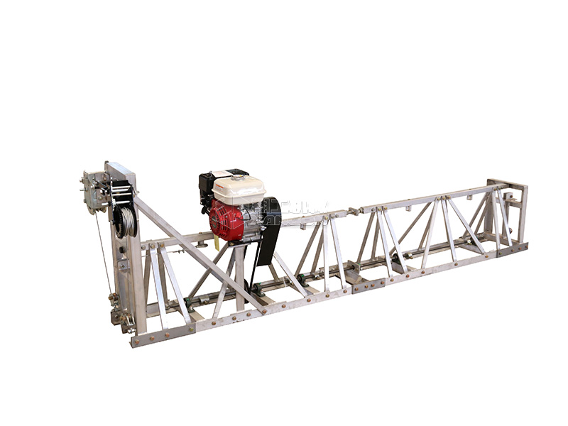 1,雙速手搖絞車(chē)(合金鋼齒輪的手動(dòng)絞輪)輕松控制整機(jī)的行走,操作省力而且能均勻的控制振動(dòng)梁工作速度。一般情況下,振動(dòng)梁每分鐘可前行3-4米,即完成20-40㎡/分。