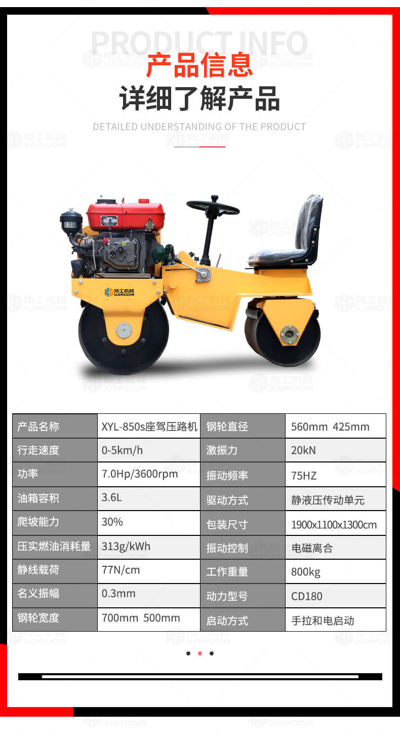 XYL-850S座駕壓路機用于壓實瀝青表面,壓實礫石、沙土等工程基礎(chǔ),碾壓草坪,作業(yè)半徑小,可在狹小的區(qū)域內(nèi)工作;國內(nèi)名優(yōu)柴油機,品質(zhì)保證,性能優(yōu)越,啟動容易;