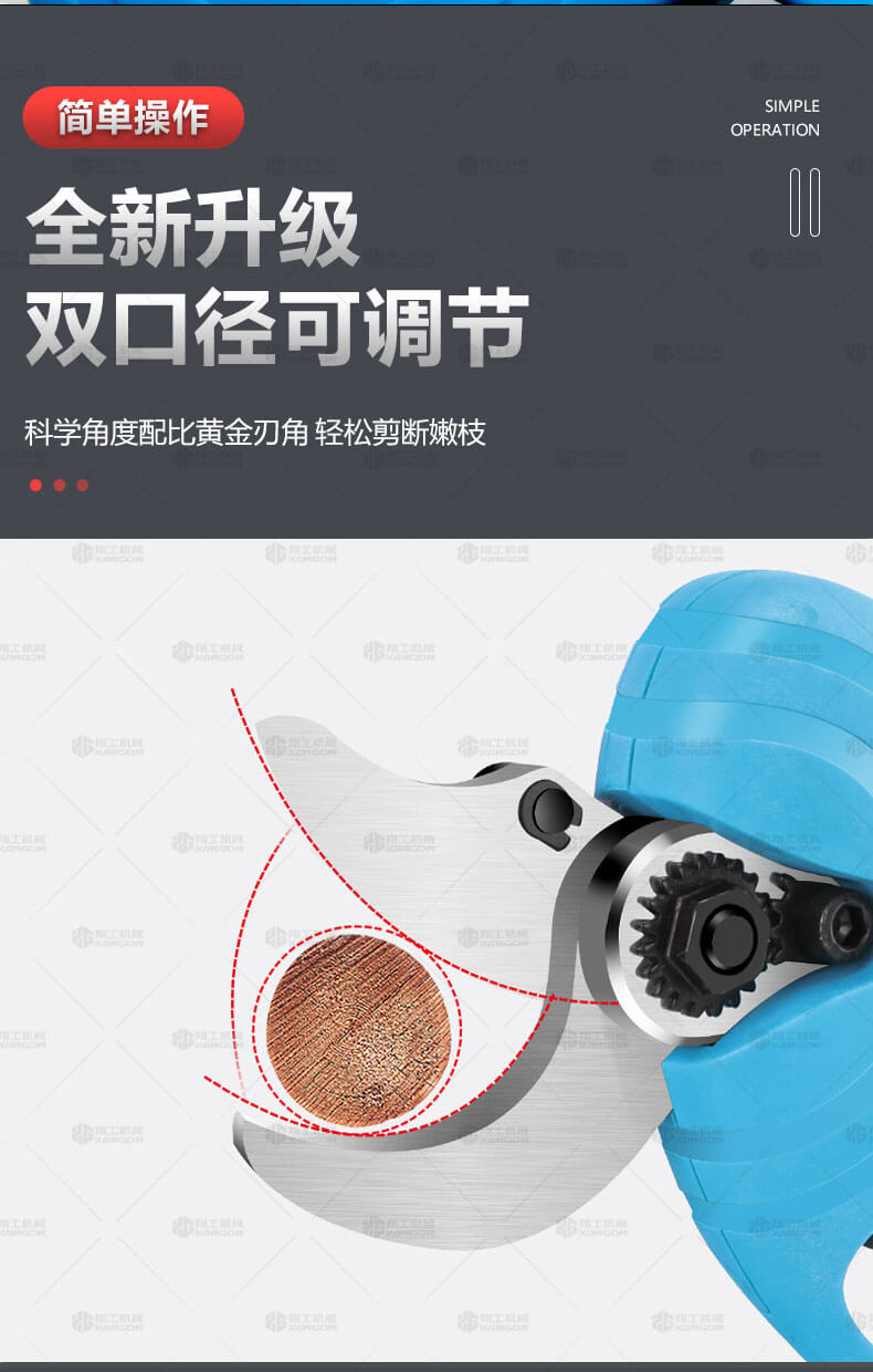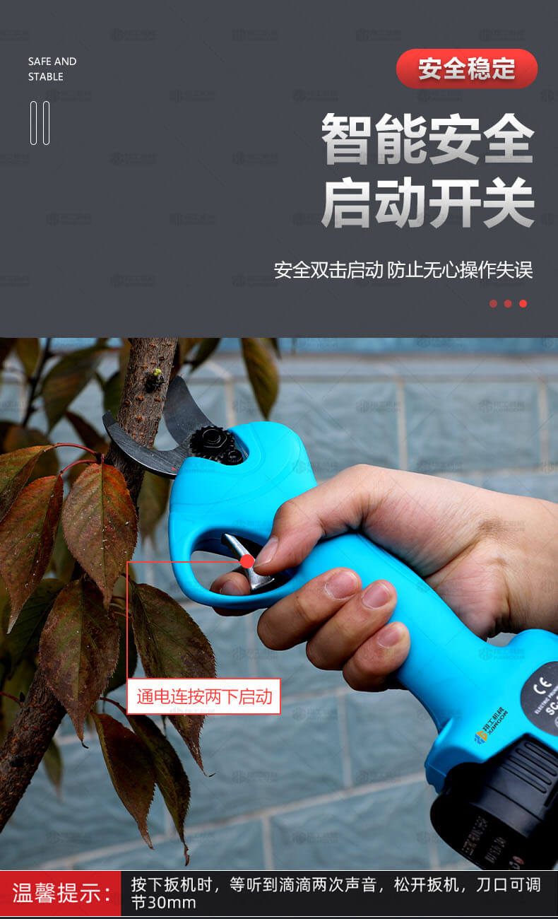 電動修枝剪的使用大大提高了植物的修剪效率,降低了修剪工的工作強(qiáng)度,大受人們的喜愛。滿足了當(dāng)今社會簡單輕巧的工作方式,一把小小的電動修枝剪不傷手,一年四季均可以使用,解決寒冬酷暑高強(qiáng)度工作的傷害,電動修枝剪有多種選擇,這是一款無線的電動修枝剪,使用更加方便。
