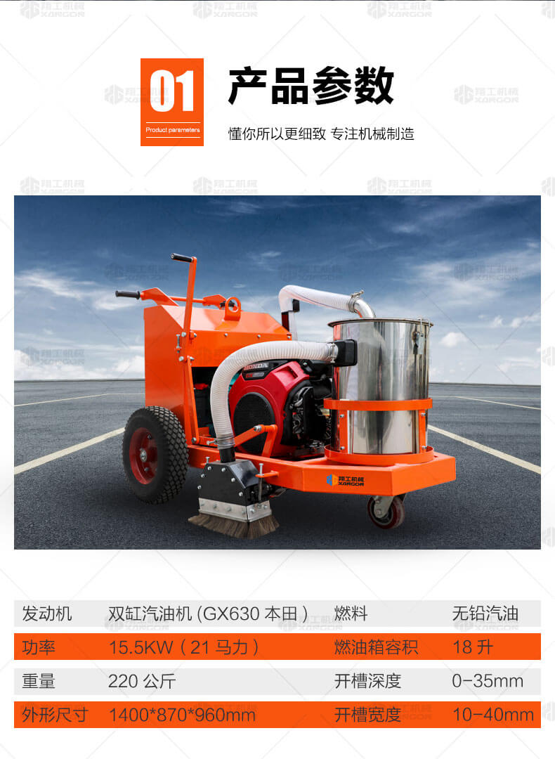 自吸塵式路面開槽機(jī)帶有吸塵功能,解決了傳統(tǒng)開槽機(jī)工作產(chǎn)生灰塵的問題,更加環(huán)保。我們這款路面開槽機(jī)是專門用于混凝土路面開槽的,性能優(yōu)越,節(jié)能環(huán)保。
