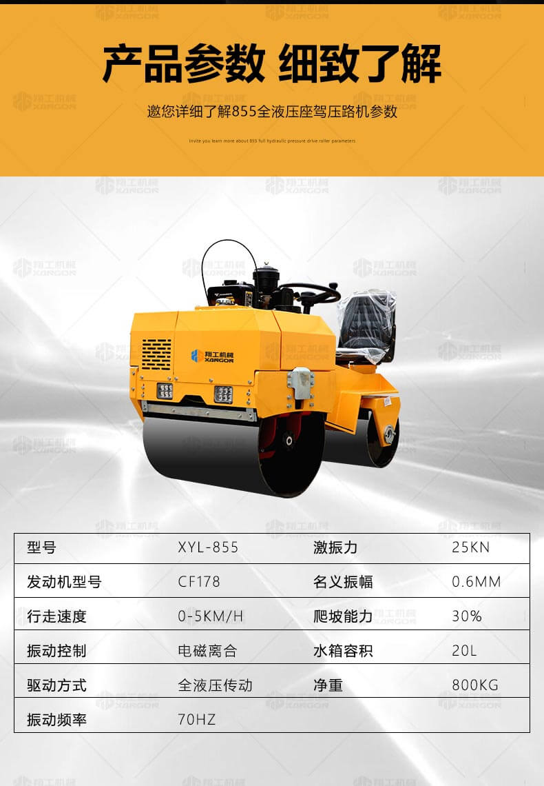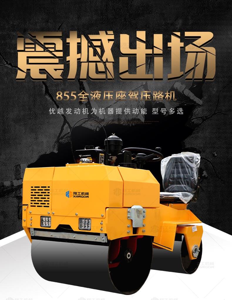 855座駕壓路機(jī)主要用于溝渠基礎(chǔ),道路,體育場(chǎng)地的壓實(shí)整平,也可用于壓實(shí)瀝青表面的作業(yè)。