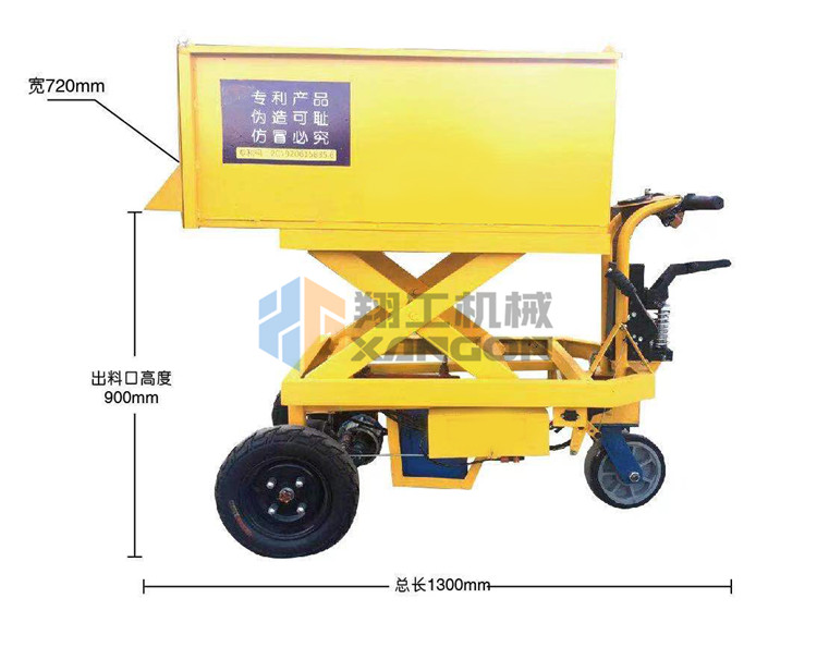 升降式混凝土小推車其主要特點(diǎn)是料斗升降式、尾后出料口和電動(dòng)行走。