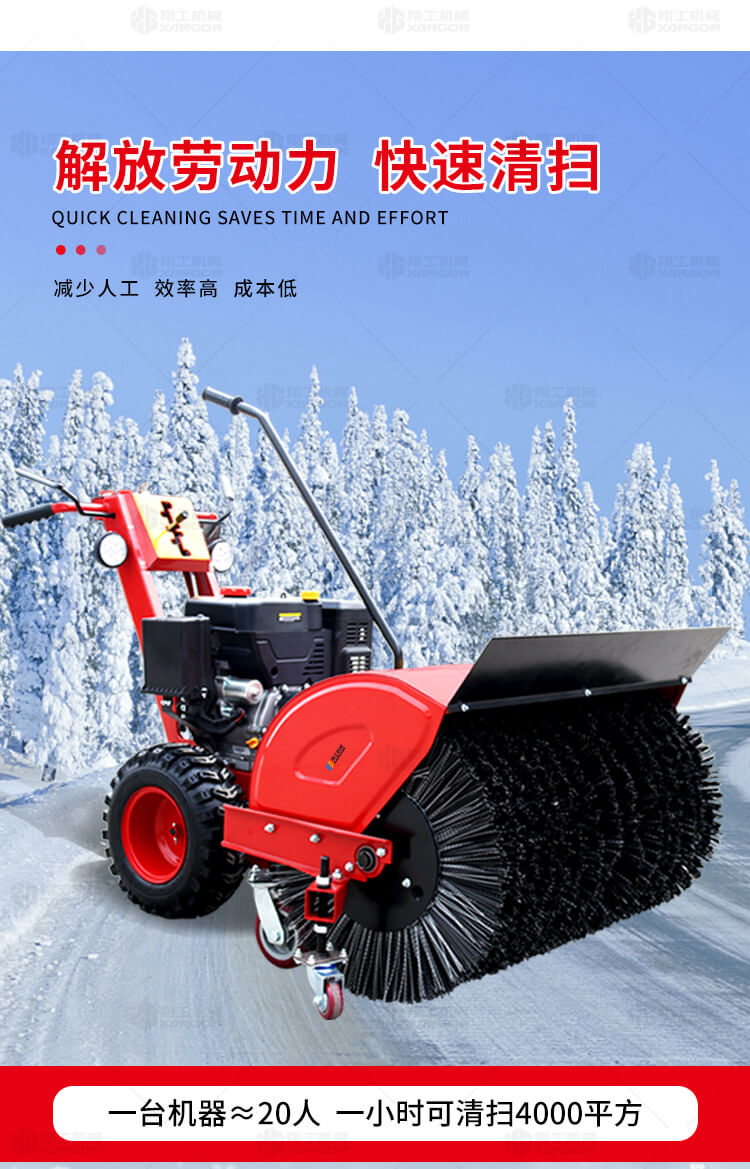 自行走多功能掃雪機是一款用于道路、廣場等大區(qū)域面積積雪清掃的滾刷式掃雪機。該滾刷具有極高的耐磨度,即使針對極度不平道路積雪的清掃也擁有高效的潔凈效果。該機小巧靈活,價格低、功能多,節(jié)省勞動力,一臺機器頂10個-20個人工。是機關(guān)、單位、學(xué)校、停車場、廣場、物業(yè)小區(qū)、花園、非機動車道等廣泛選用的冬季清雪機械。一機多用型,經(jīng)濟實用!