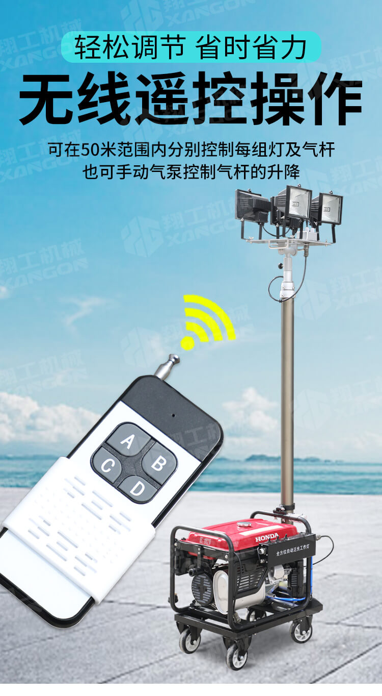 全方位升降工作燈適用于鐵路、電力、公安、消防、石油、石化等各種大型施工作業(yè)、事故搶修、搶險救災等工作現(xiàn)場對大面積高亮度照明的需要。