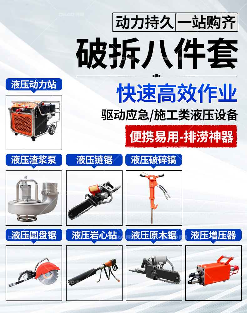 混凝土破拆不是單一工具就可以完成的,其需要一套完整的破拆工具。