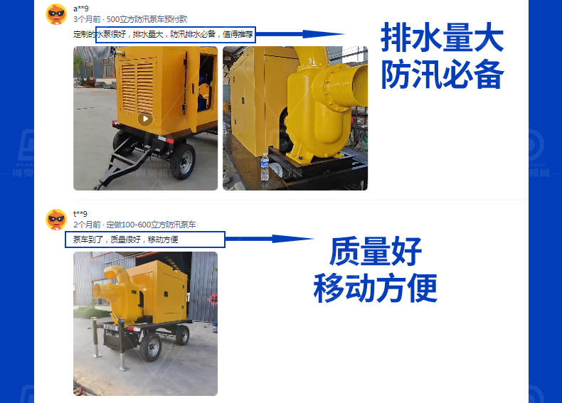 移動防汛排水泵 大口徑大流量 防洪排澇 應(yīng)急排水 型號齊全