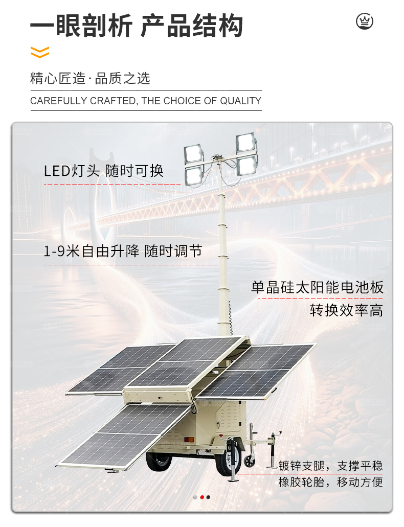 太陽能燈車采用高效光伏板與鋰電池組合,白天蓄電,夜間自動(dòng)照明,節(jié)能環(huán)保。配備高亮度LED燈,照射范圍廣,適用于道路施工、應(yīng)急搶險(xiǎn)、夜間作業(yè)等場(chǎng)景。移動(dòng)靈活,防水防塵,無需外接電源,續(xù)航持久。結(jié)構(gòu)堅(jiān)固,操作簡(jiǎn)便,是戶外臨時(shí)照明的理想選擇,兼顧經(jīng)濟(jì)性與實(shí)用性。