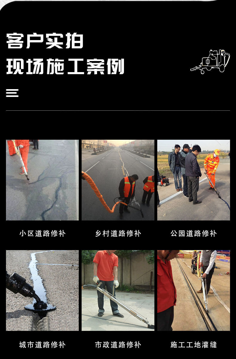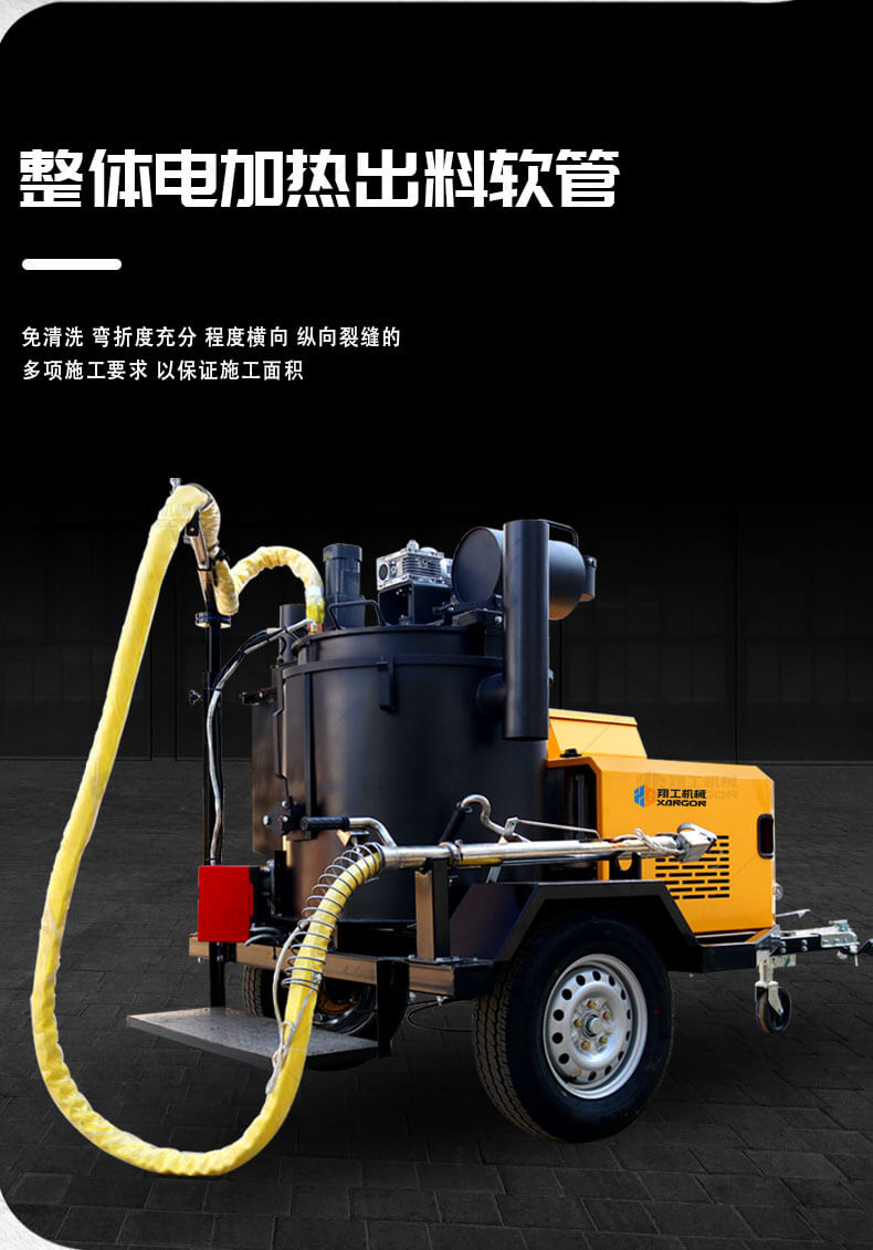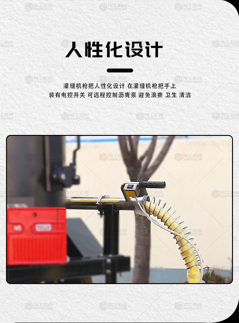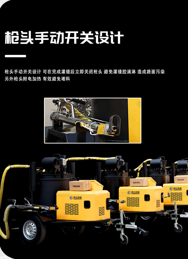 XGF-200瀝青灌縫機(jī)使用原料為瀝青灌縫膠,主要用于瀝青路面不規(guī)則裂縫、混凝土路面、橋梁伸縮縫、上下水道、煤氣管埋設(shè)機(jī)鋪裝路面的連結(jié)處防水處理,是翔工機(jī)械專門設(shè)計(jì)、生產(chǎn)的瀝青補(bǔ)灌縫機(jī)械。